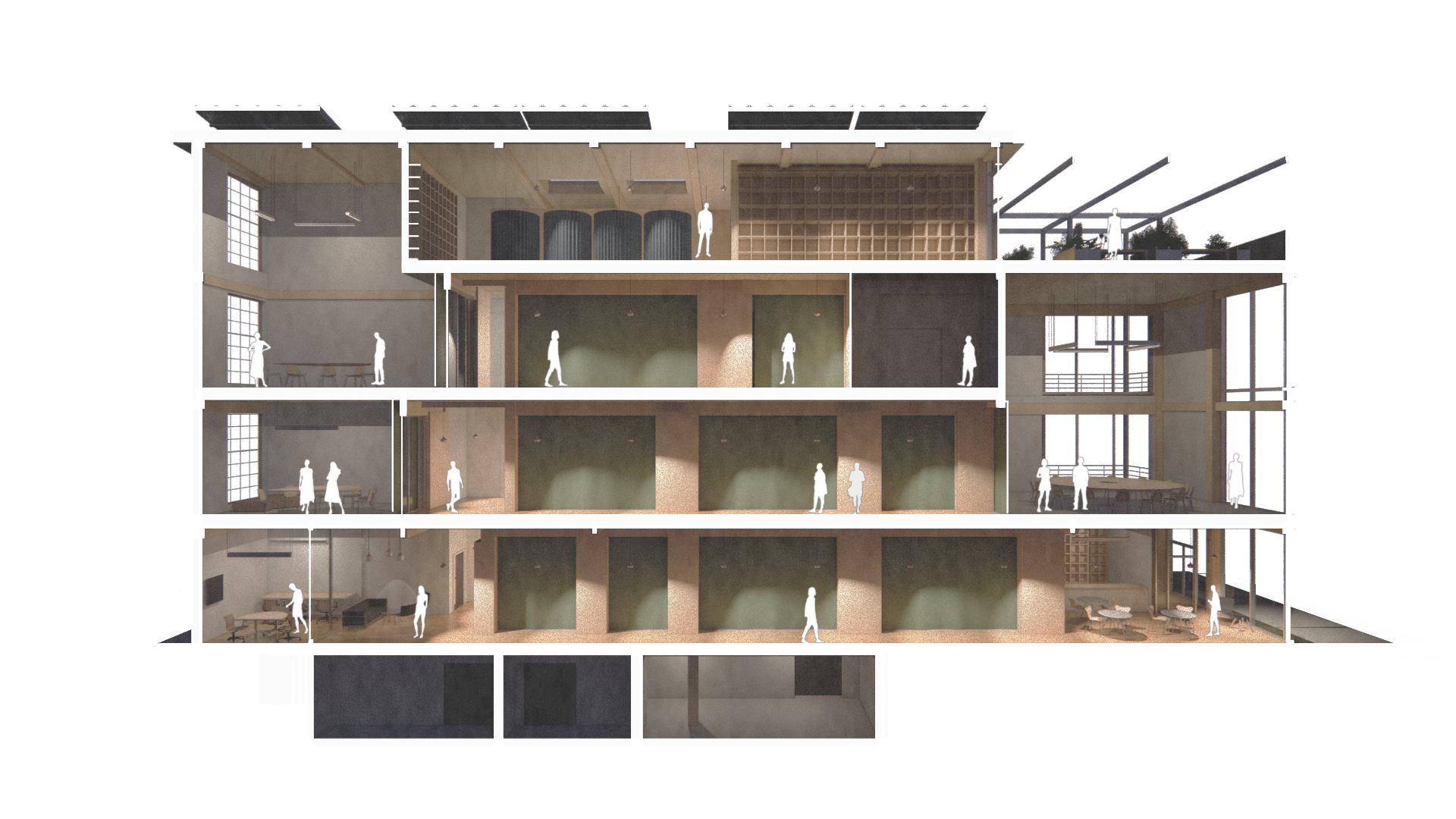 4A Comprehensive Design Building Studio: Andrew Levitt | Skills used: Revit, Rhino, Enscape, Illustrator, Photoshop