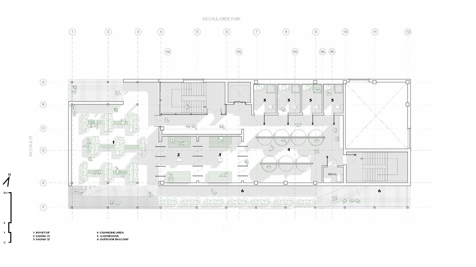 Fourth Floor and Roof Isometric Plan and Interior Views